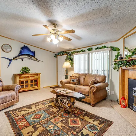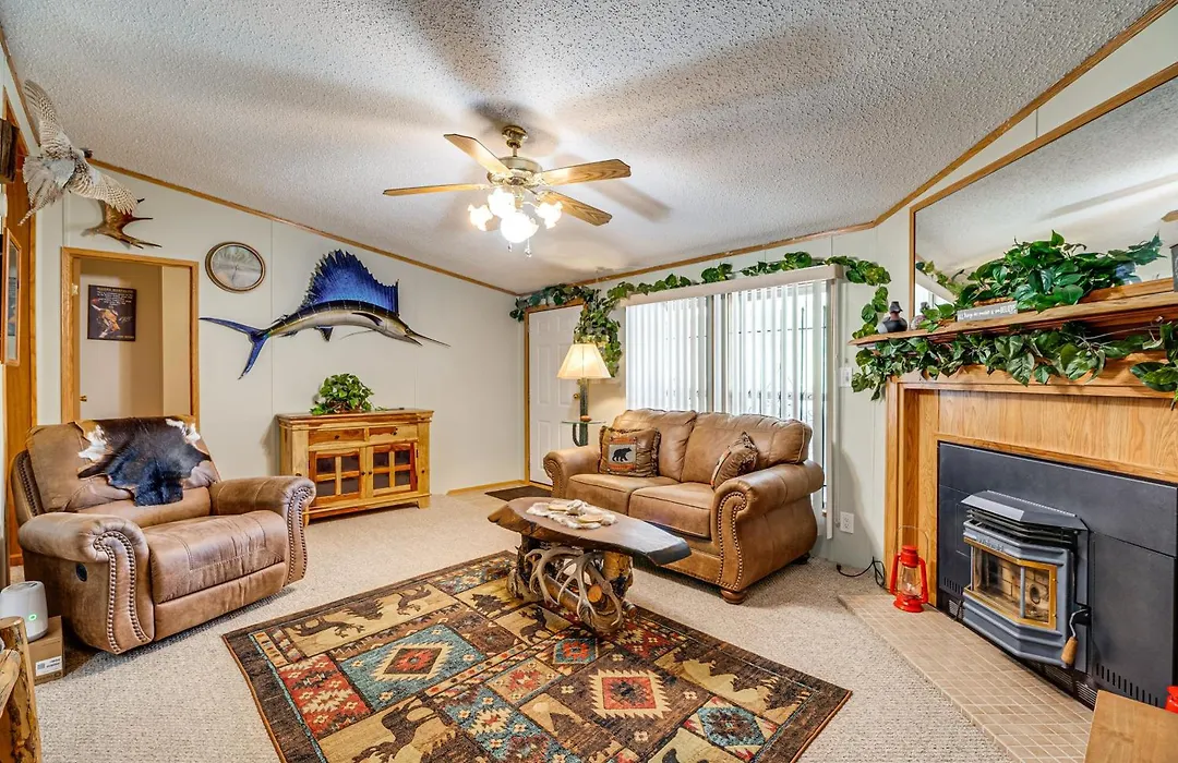 The 2-bedroom Cotopaxi Getaway With Deck 17 Mi To Royal Gorge houses a fully furnished kitchen with a microwave, a fridge, and kitchenware.